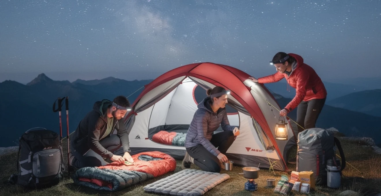 Équipement technique spécialisé pour le bivouac nocturne en altitude
