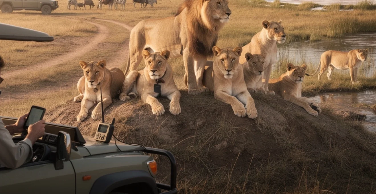 Sur le terrain, la radio-télémétrie permet aux équipes scientifiques – et parfois aux guides formés – de localiser un individu marqué grâce à une antenne et un récepteur. Vous avez peut-être déjà vu ces longues antennes tenues hors de la fenêtre d’un 4×4 : en suivant l’intensité du signal, l’équipe se rapproche progressivement de l’animal. L’objectif n’est pas de transformer le safari en « chasse au signal », mais de documenter en continu la vie d’individus clefs, comme un mâle dominant ou une femelle matriarche, afin de mieux protéger l’ensemble de la population.