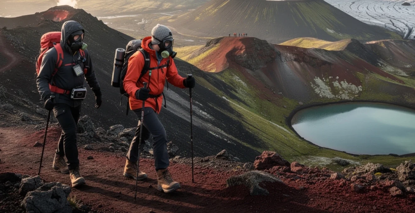 Pour les randonnées proches de sites très actifs ou lors de phases éruptives, les guides professionnels utilisent des détecteurs H₂S portatifs, capables d’alerter en cas de dépassement des seuils de sécurité. Dans ces contextes spécifiques, des masques respiratoires équipés de filtres adaptés (de type ABEK) peuvent être requis. Pour un randonneur indépendant sur les sentiers balisés classiques, un simple masque FFP2 n’apporte qu’une protection limitée contre ces gaz, mais peut être utile en cas de cendre en suspension.